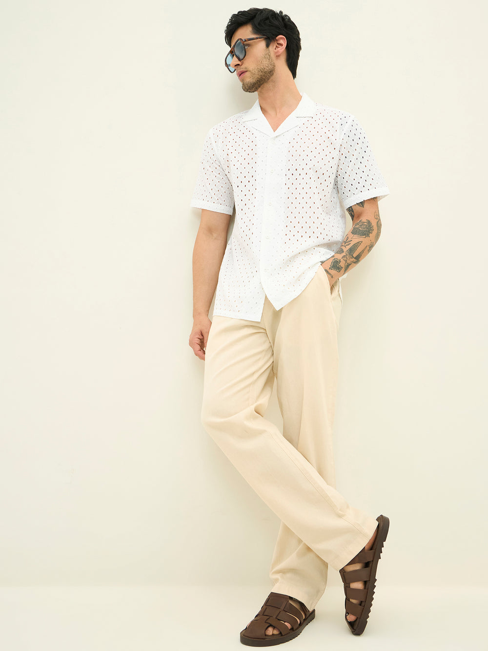 Experience the elegant blend of pure comfort and intricate artistry with this 100% cotton Schiffli shirt. Each piece is meticulously embroidered by skilled artisans, transforming the finest cotton into a statement of modern sophistication and heritage beauty.