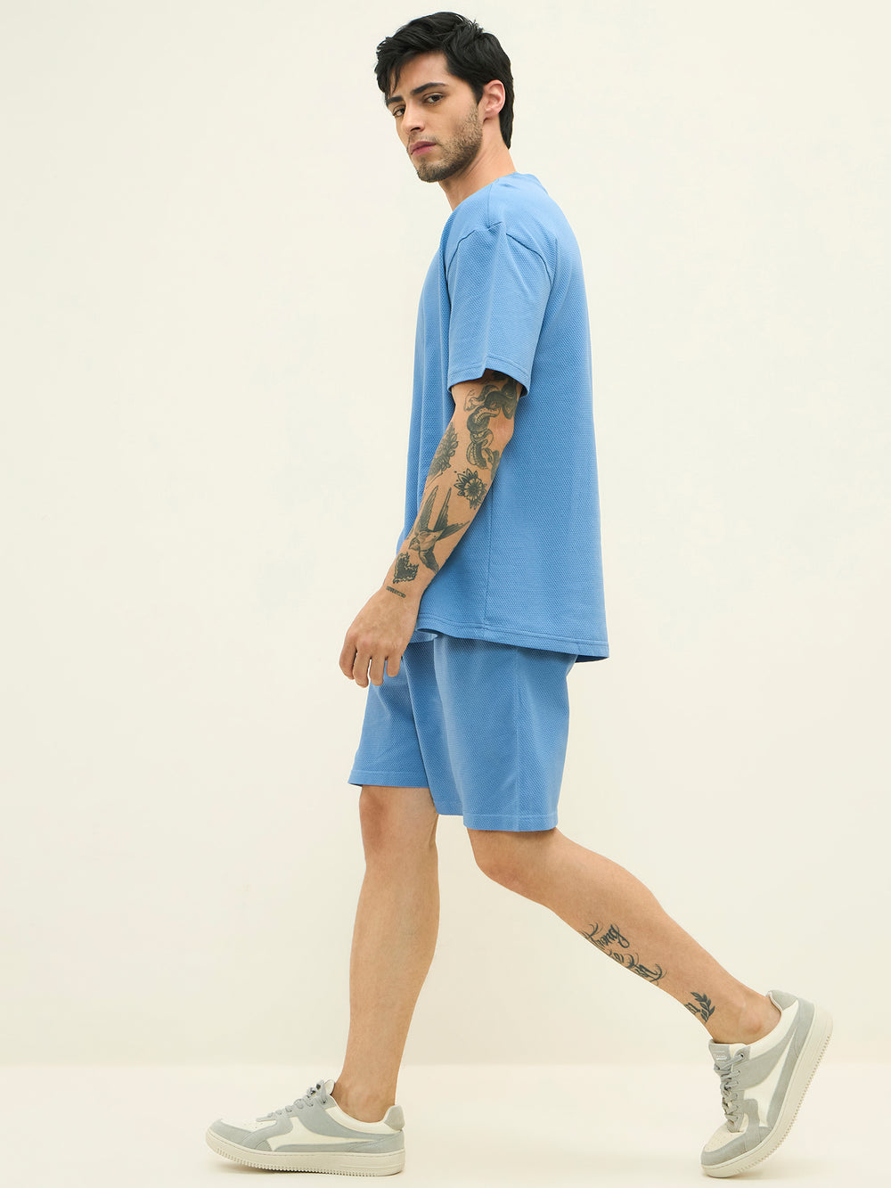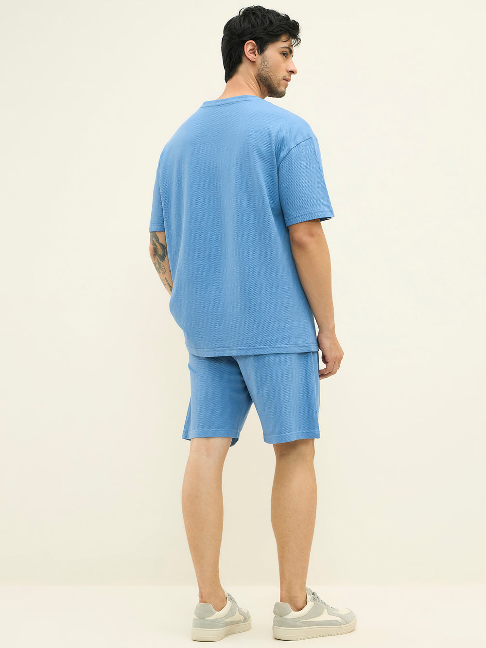 Its matte surface and elegant drape make it versatile enough for both lounge and leisure. Designed for those who seek refinement in relaxation, this ensemble balances ease, breathability, and timeless design, redefining smart casual luxury for the modern achiever.